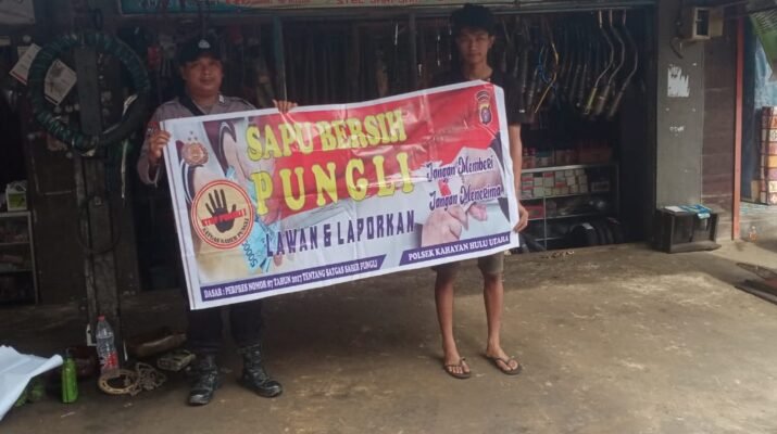 Polres Gunung Mas – Personel Polsek Kahayan Hulu Utara (Polsek Kahut), Polda Kalteng, Gunung Mas, Kalimantan Tengah, mengedukasi kepada masyarakat setempat tentang bahaya pungutan