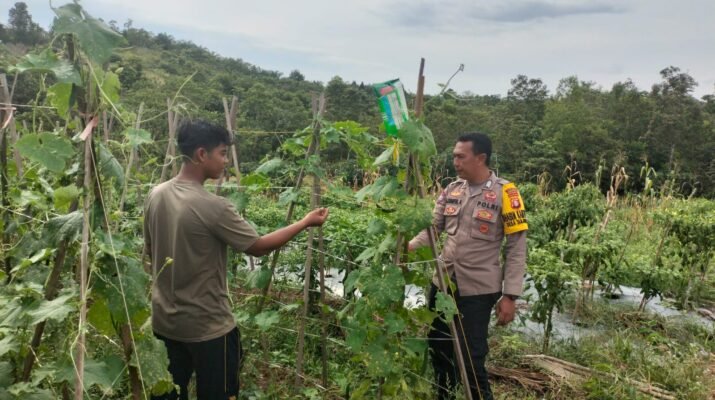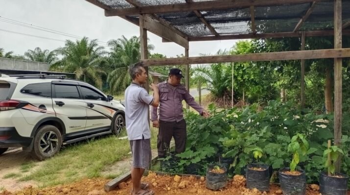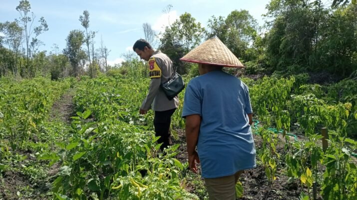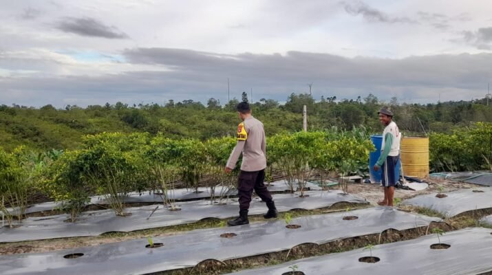 Kuala Kurun – Bhabinkamtibmas Polsek Kurun Bripka Ahmad Syaiful Anwar aktif mendukung program ketahanan pangan nasional dengan melaksanakan sambang dan pengecekan lahan perkebunan milik