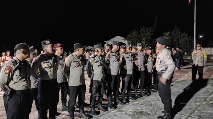Gunung Mas – Ratusan personel gabungan dari Polres Gunung Mas, Polsek jajaran, TNI, Satpol PP, dan Dinas Perhubungan Kabupaten Gunung Mas mengamankan jalannya Debat