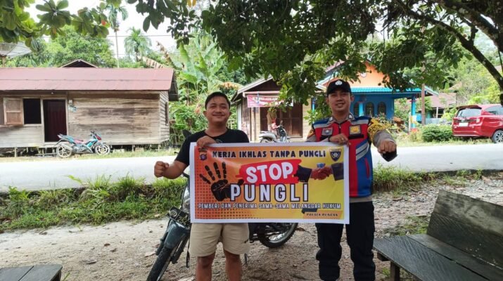 Polres Gunung Mas – Personel Polsek Manuhing, Polda Kalteng, Gunung Mas, Kalimantan Tengah, mengedukasi kepada masyarakat setempat tentang bahaya pungutan liar. Langkah ini dilakukan